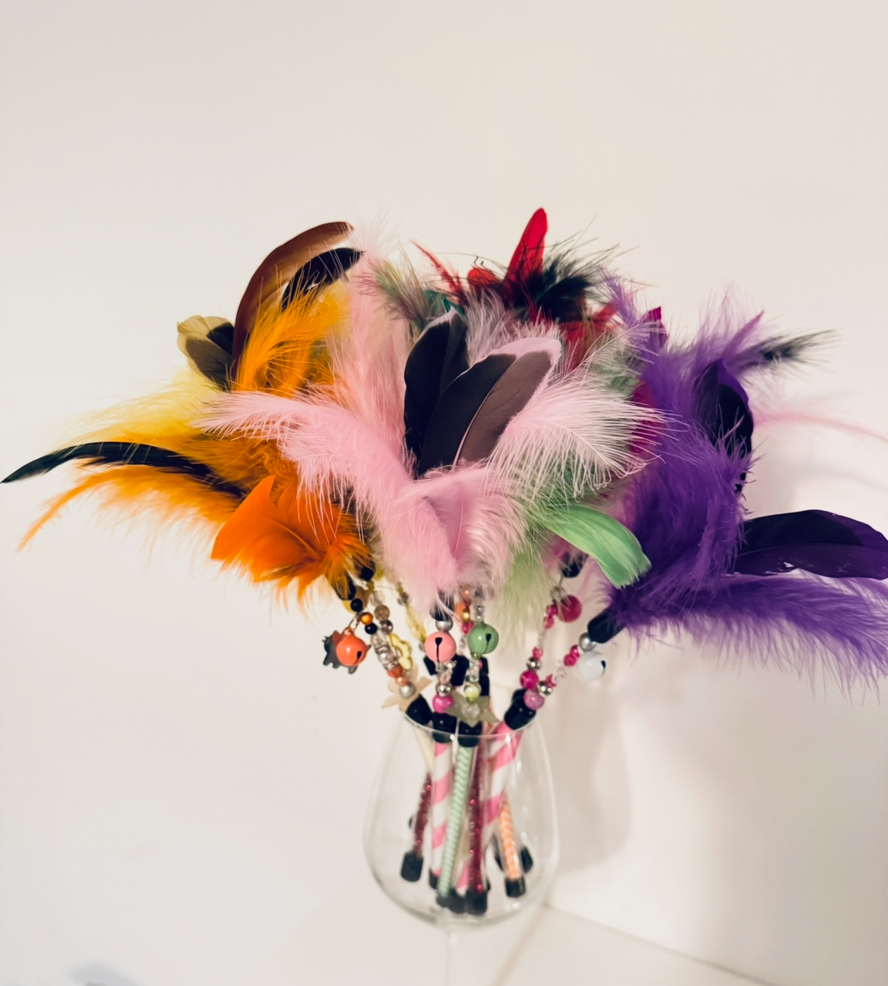 Créés avec des matériaux légers et robustes, nos plumeaux faits main stimulent l’instinct de prédation et favorisent les séances de jeu interactif.